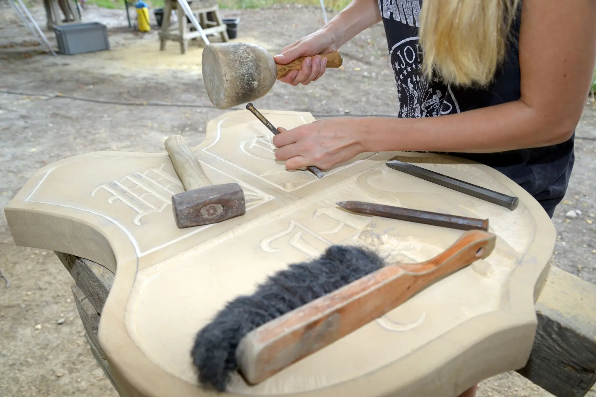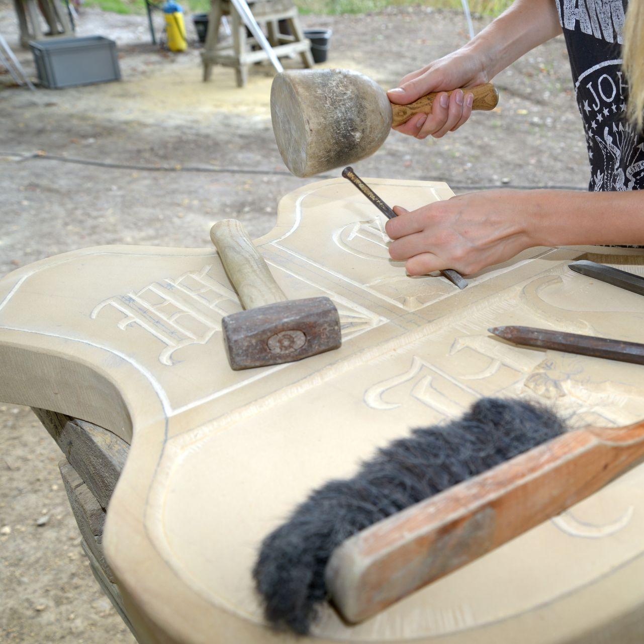 Hands-on-Erfahrung im Umgang mit traditionellen Steinmetz-Werkzeugen.