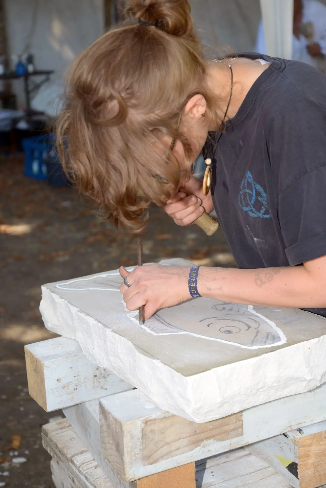 Bei dem Workshop „Arbeiten in Stein - Freie Steinbildhauerei“ geht es darum, ein Gespür für den Stein und seine Strukturen zu entwickeln, ihn durch eigene Bearbeitung Leben einzuhauchen, und verborgenes freizulegen. Bei der Ideenfindung bis hin zur Umsetzung werden sie vom Workshopleiter mit Rat und Tat begleitet. Der sachgerechte Umgang mit den Werkzeugen und die technische Handhabung werden vermittelt. Ein Arbeitsthema wird nicht gestellt. Die entstandenen Kustwerke sind individuell gestatete Einzelstücke.. Der Workshopleiter respektiert und akzeptiert die künstlerischen Freiheiten der Teilnehmer. Zur Teilnahme am Kurs sind keine Vorkenntnisse nötig. Die Bearbeitung von Stein bedarf jedoch Geduld und Ausdauer, und ist mit einer gewissen körperlichen Anstrengung verbunden.